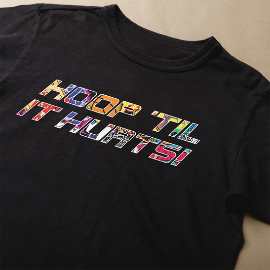 Hoop 'Til It Hurts! Graffiti Collection. Custom, one-of-a-kind apparel. Free and fast...